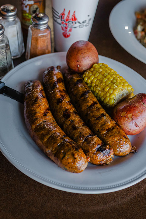 1lb of Cajun Boudin sausage (3 links) with two sides and a drink.